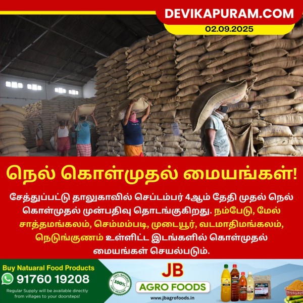 கலசபாக்கம் தாலுகாவில் செப்டம்பர் 4ஆம் தேதி முதல் நெல் கொள்முதல் முன்பதிவு தொடங்குகிறது. எலத்தூர், பாடகம், கடலாடி, ஆதமங்கலம், தென்மாதிமங்கலம்…
