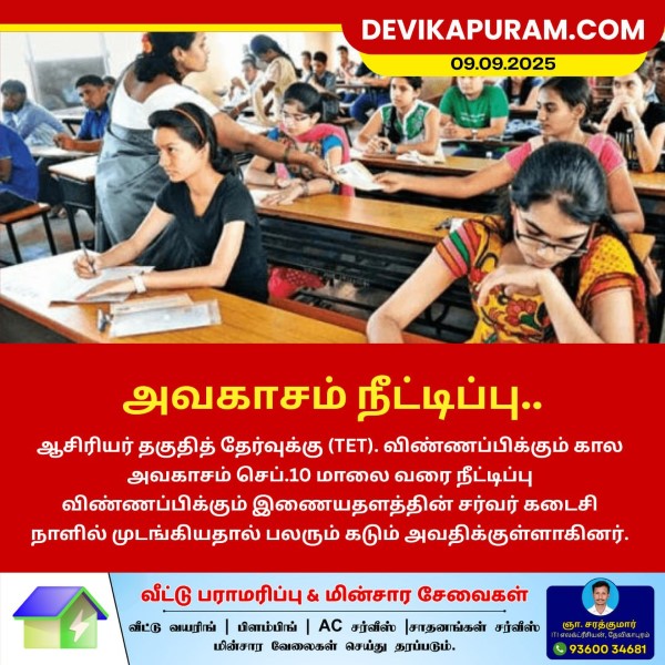ஆசிரியர் தகுதித் தேர்வுக்கு (TET) விண்ணப்பிக்கும் கால அவகாசம் 10ஆம் தேதி மாலை 5 மணி வரை கால அவகாசம்…