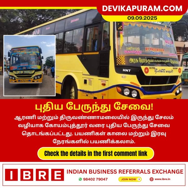 ஆரணி, போளூர், செங்கம், திருவண்ணாமலை, ஊத்தங்கரை, சேலம் வழியாக கோயம்புத்தூர் செல்லும் புதிய காலை மற்றும் இரவு நேர பேருந்து…