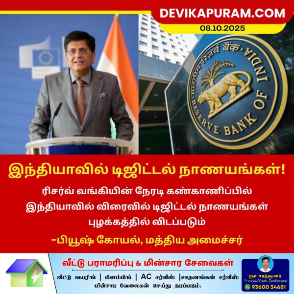 ரிசர்வ் வங்கியின் நேரடி கண்காணிப்பில் இந்தியாவில் விரைவில் டிஜிட்டல் நாணயங்கள் புழக்கத்தில் விடப்படும் – மத்திய அமைச்சர் பியூஷ் கோயல்.