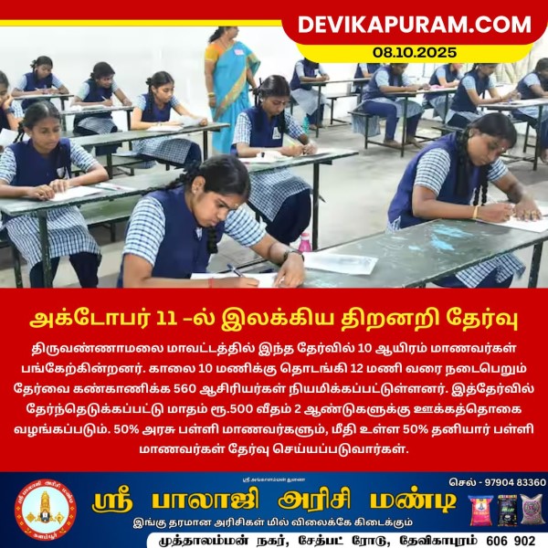 திருவண்ணாமலை மாவட்டத்தில் இந்த தேர்வில் 10 ஆயிரம் மாணவர்கள் பங்கேற்கின்றனர். காலை 10 மணிக்கு தொடங்கி 12 மணி வரை…