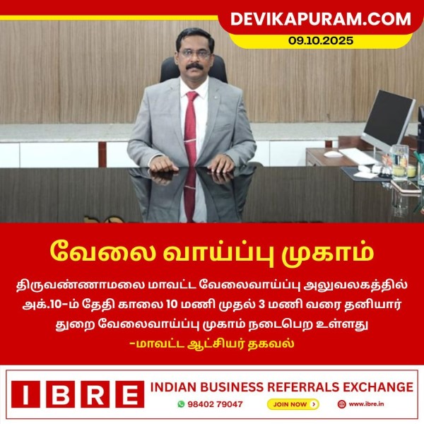 திருவண்ணாமலை மாவட்ட வேலைவாய்ப்பு அலுவலகத்தில் வரும் அக்டோபர் 10, 2025 அன்று காலை 10 மணி முதல் மதியம் 3…