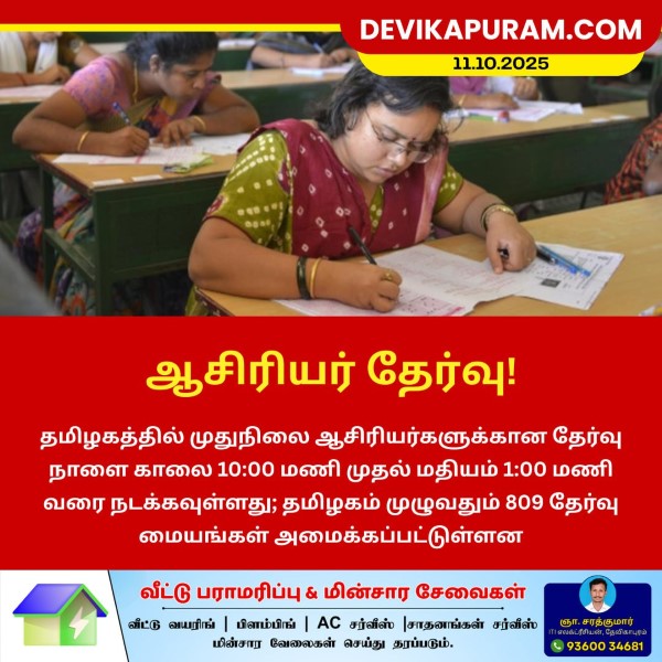 தமிழகத்தில் முதுநிலை ஆசிரியர்களுக்கான தேர்வு நாளை காலை 10:00 மணி முதல் மதியம் 1:00 மணி வரை நடக்கவுள்ளது. தமிழகம்…