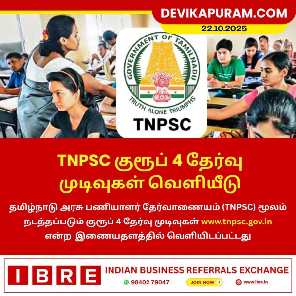 தமிழ்நாடு அரசு பணியாளர் தேர்வாணையம் (TNPSC) மூலம் நடத்தப்படும் குரூப் 4 தேர்வு முடிவுகள் www.tnpsc.gov.in என்ற இணையதளத்தில் வெளியிடப்பட்டது.