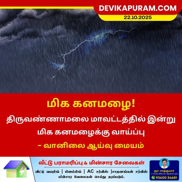 திருவண்ணாமலை மாவட்டத்தில் இன்று மிக கனமழைக்கு வாய்ப்பு என வானிலை ஆய்வு மையம் தெரிவிக்கப்பட்டுள்ளது.