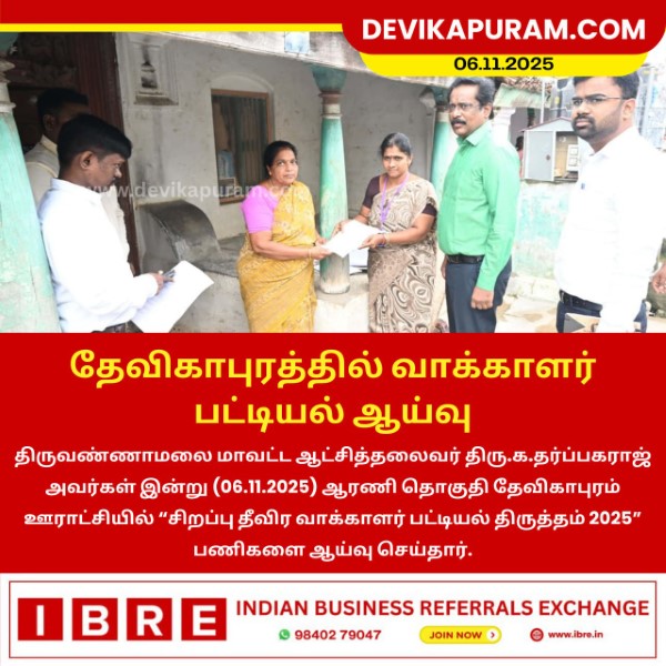 திருவண்ணாமலை மாவட்ட ஆட்சித்தலைவர் திரு.க.தர்ப்பகராஜ் அவர்கள் இன்று (06.11.2025) ஆரணி தொகுதி தேவிகாபுரம் ஊராட்சியில் “சிறப்பு தீவிர வாக்காளர் பட்டியல்…