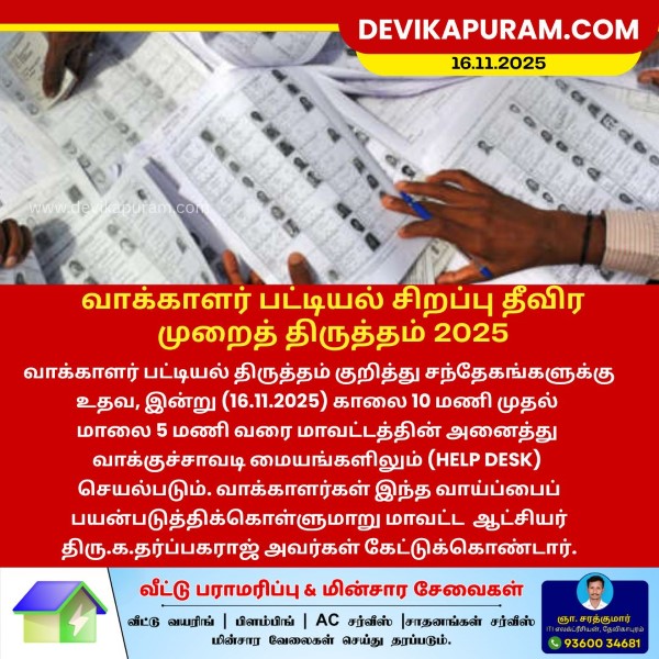 வாக்காளர் பட்டியல் சிறப்பு தீவிர திருத்த கணக்கீட்டு படிவத்தை பூர்த்தி செய்வதற்கும், பூர்த்தி செய்யும் போது ஏதேனும் சந்தேகங்கள் ஏற்பட்டால்…