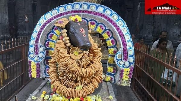 திருவண்ணாமலை அருள்மிகு அண்ணாமலையார் திருக்கோவிலில் மாட்டுப்பொங்கலை முன்னிட்டு, பெரிய நந்தி பகவானுக்கு அனைத்து விதமான காய்கறிகள் மற்றும் பழ வகைகளால் அலங்கரித்து சிறப்பு பூஜை செய்யப்பட்டது. இதில் ஏராளமான பக்தர்கள் கலந்து கொண்டு சாமி தரிசனம் செய்தார்கள்.