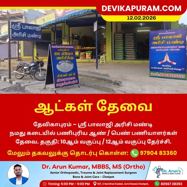 தேவிகாபுரம் – ஸ்ரீ பாலாஜி அரிசி மண்டி நமது கடையில் பணிபுரிய ஆண் / பெண் பணியாளர்கள் தேவை.