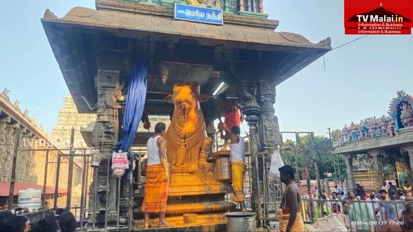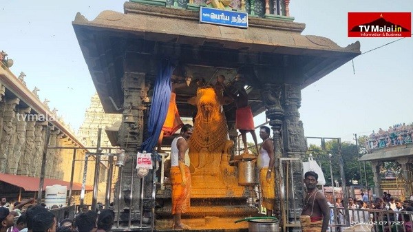 திருவண்ணாமலையில் அருணாச்சலேஸ்வரர் திருக்கோவிலில் நேற்று (07.02.2024) தை மாத பிரதோஷத்தை முன்னிட்டு நந்தி பகவானுக்கு சிறப்பு அபிஷேக ஆராதனை நடைபெற்றது. இதில் திரளான பக்தர்கள் கலந்து கொண்டு சாமி தரிசனம் செய்தார்கள்.
