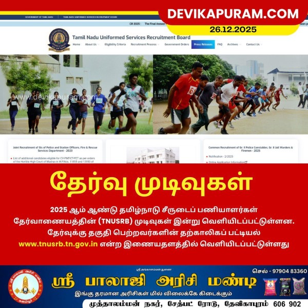 2025 ஆம் ஆண்டு தமிழ்நாடு சீருடைப் பணியாளர்கள் தேர்வாணையத்தின் (TNUSRB) முடிவுகள் இன்று வெளியிடப்பட்டுள்ளன. தேர்வுக்கு தகுதி பெற்றவர்களின் தற்காலிகப் பட்டியல் www.tnusrb.tn.gov.in என்ற இணையதளத்தில் வெளியிடப்பட்டுள்ளது.